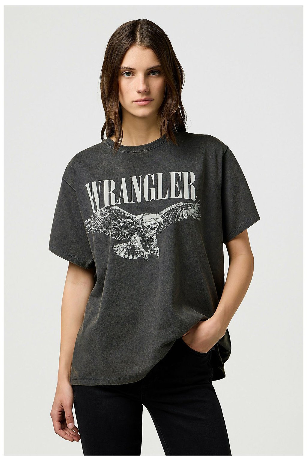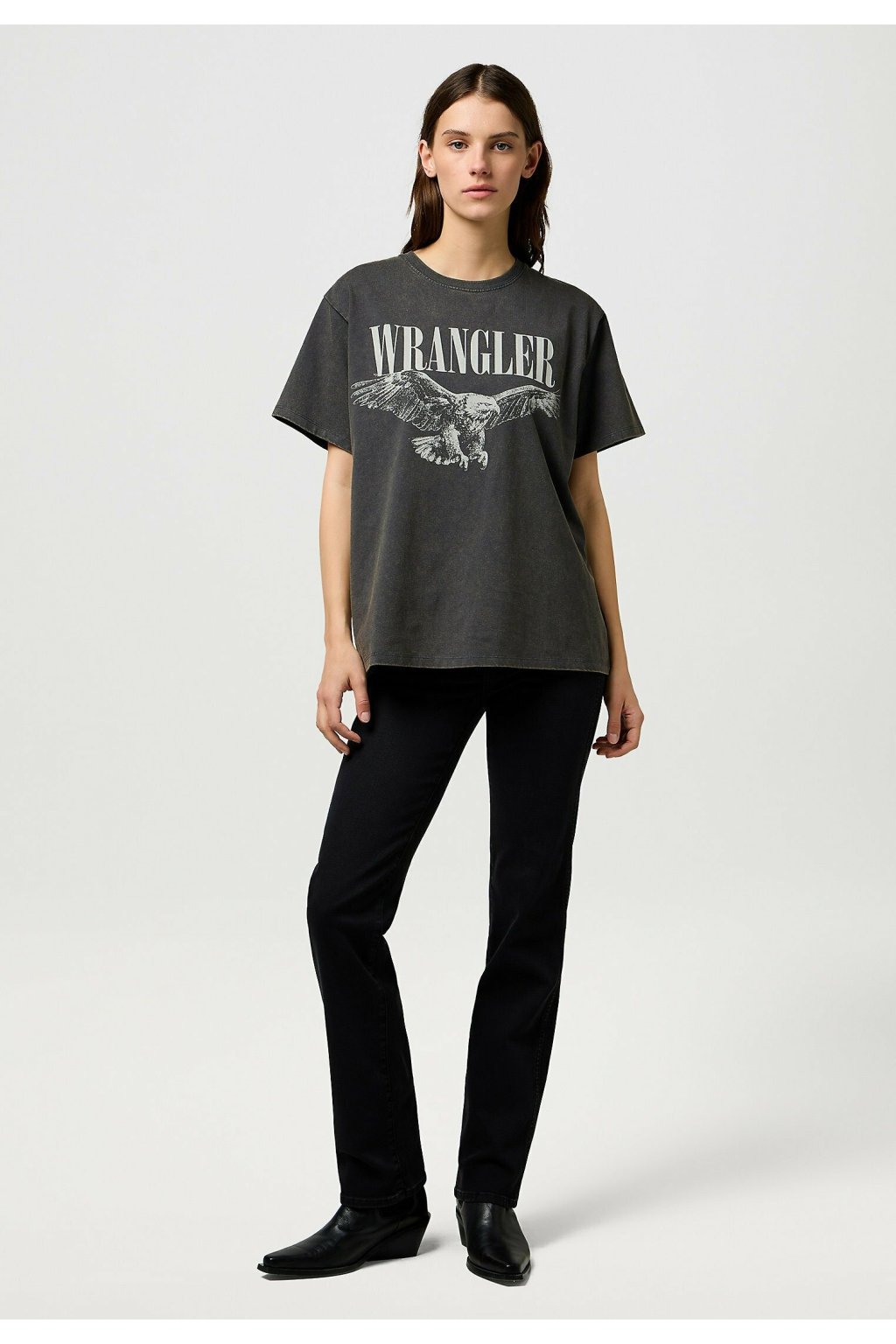 Dámske tričko Wrangler® SHRUNKEN BAND TEE IN FADED BLACK 112370766