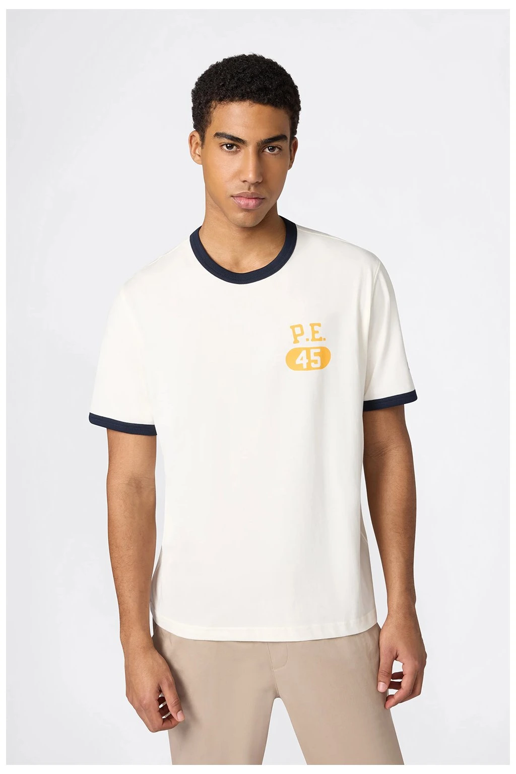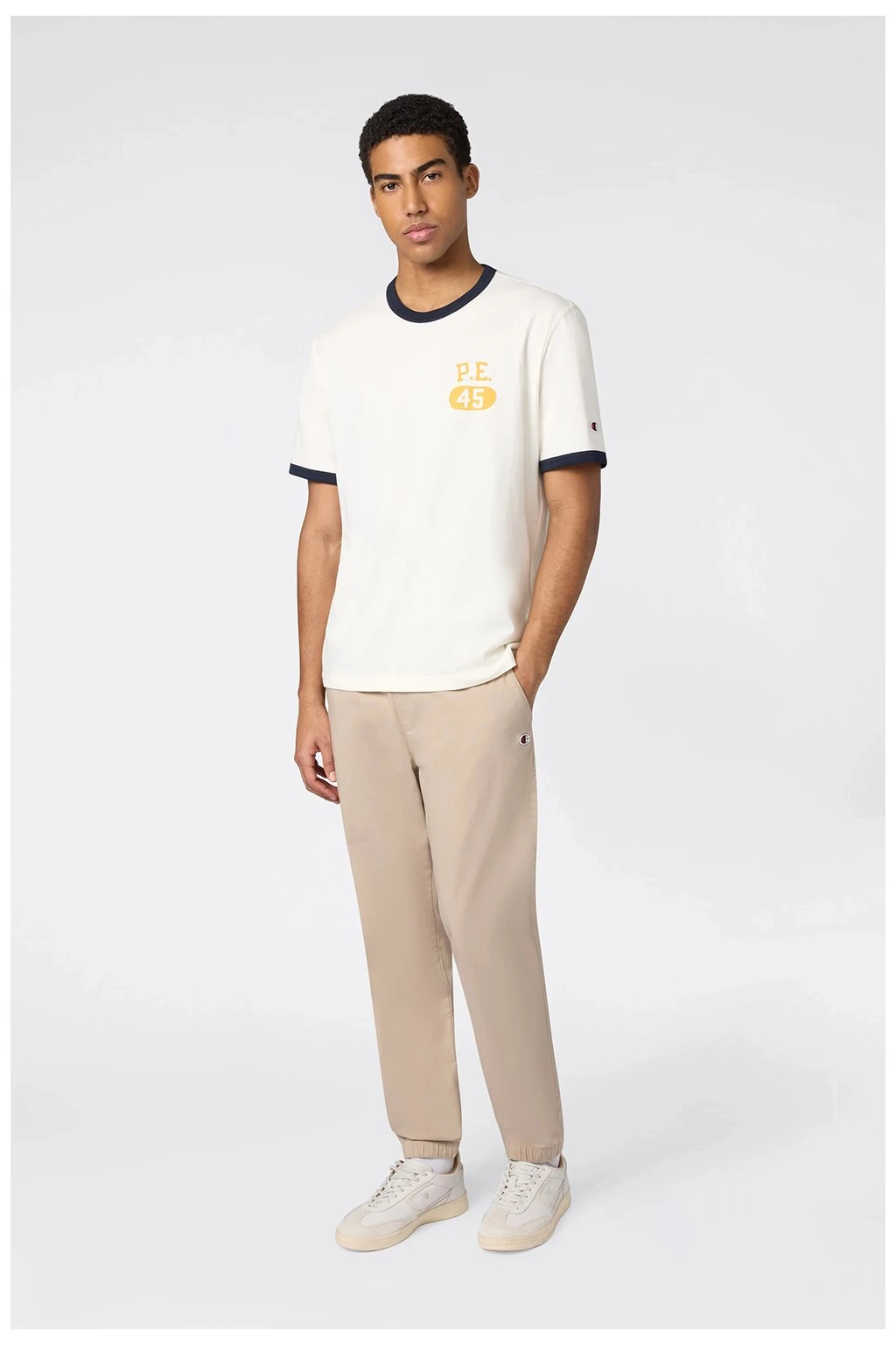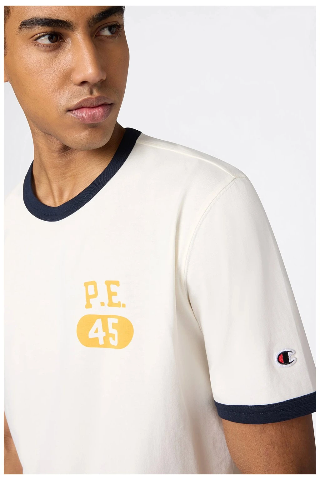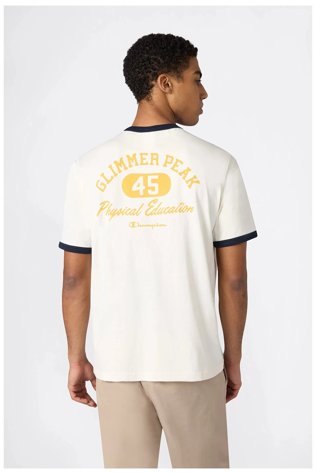 Pánske tričko Champion® Ringer T-Shirt with Graphic Cream 222054 YS160